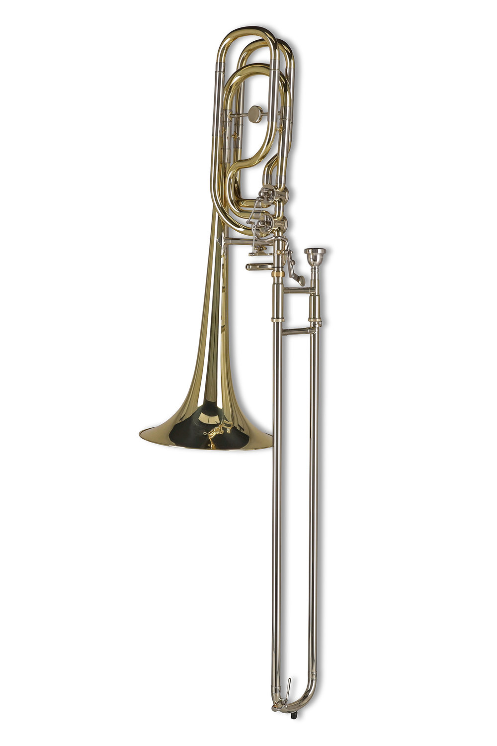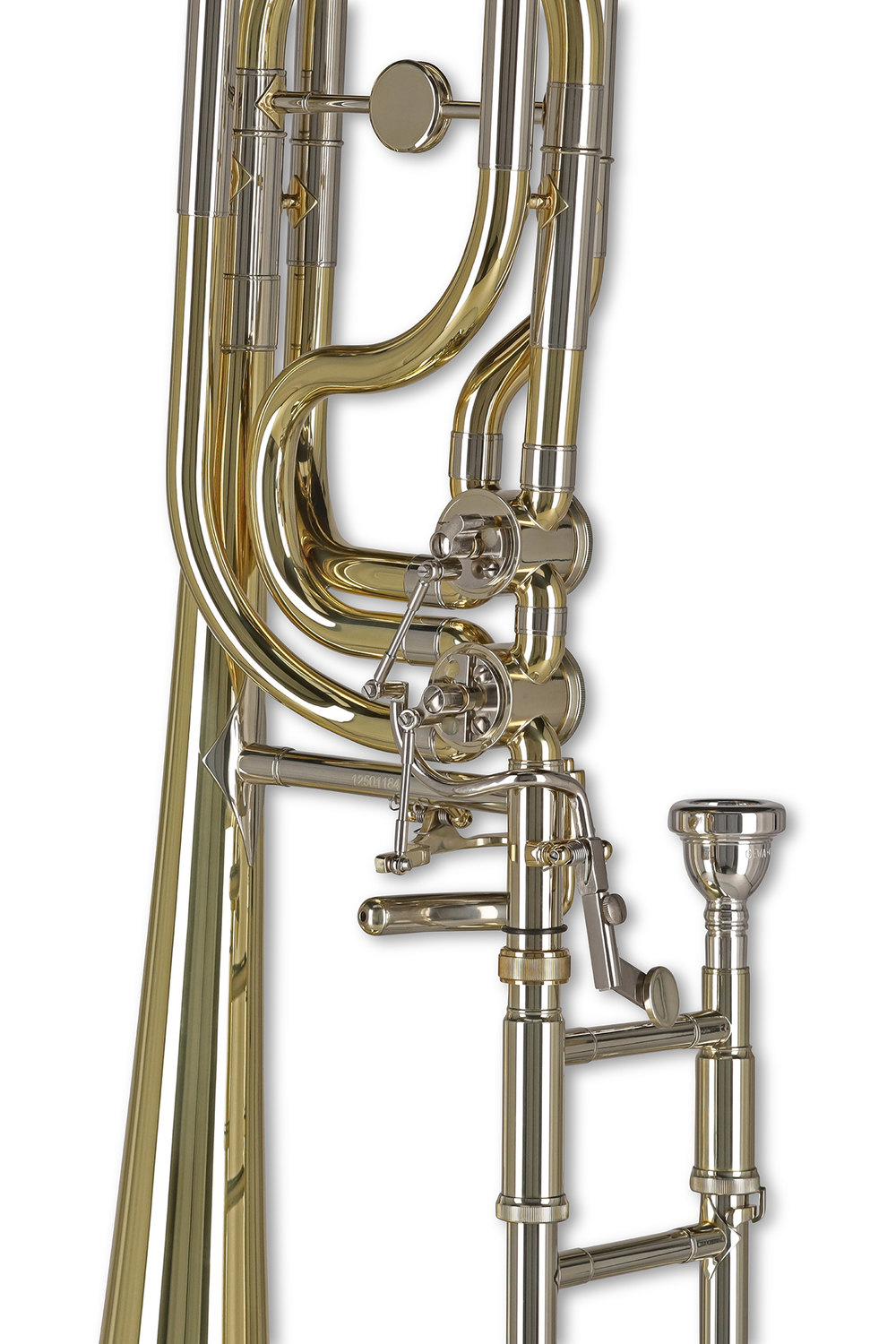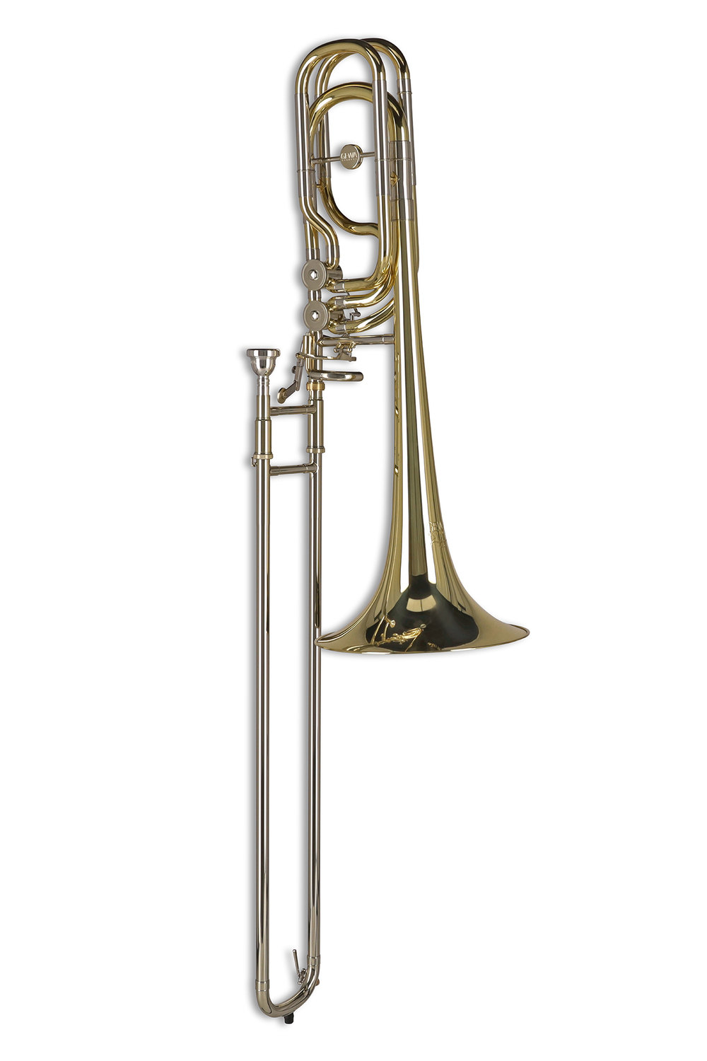 Bohrung .562″ = 14,3mm;Messing Schallstück Ø 10“ = 254mm;Neusilber Innenzug, hartverchromt;Neusilber Außenzug;Individuell einstellbare Handstütze;Zusätzlicher Eb/G-Zug;Finish: Klarlack;GEWA Mundstück 1 1/2G;Leichtetui mit Rucksackgarnitur;