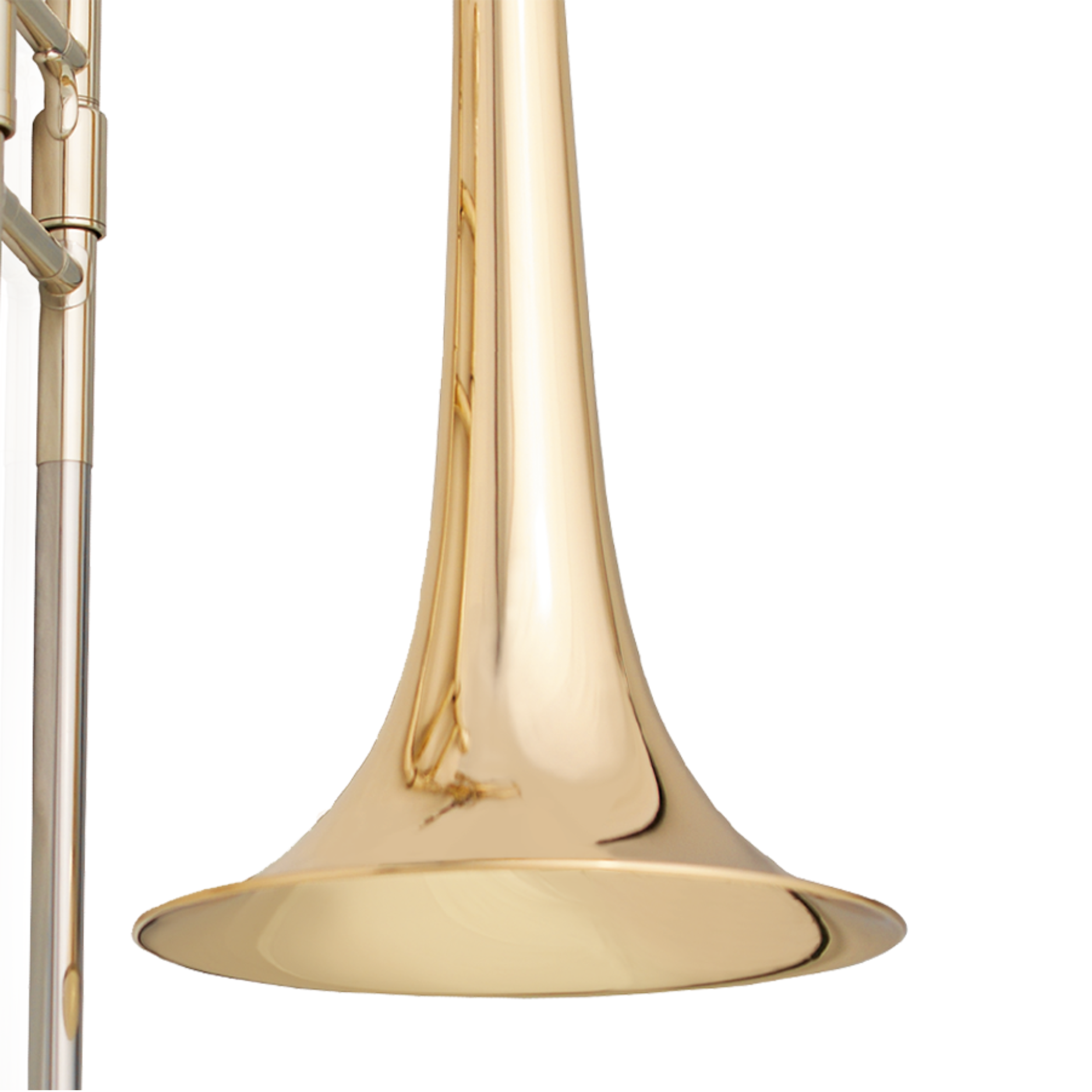 Die Posaune B&S 3085B verfügt über eine Bohrung von 13,89mm und einen 215mm großen Schallbecher. Sie ist aus Goldmessing gefertigt und liefert einen warmen, resonanten Klang. Der Schallbecher und die Bögen aus Goldmessing, der leichte Außenzug aus Neusilber und der hartverchromte Innenzug sorgen für Langlebigkeit und reibungslose Spielbarkeit. Die Klarlackierung trägt nicht nur zu seiner Ästhetik bei, sondern bietet auch eine Schutzschicht für das Instrument.