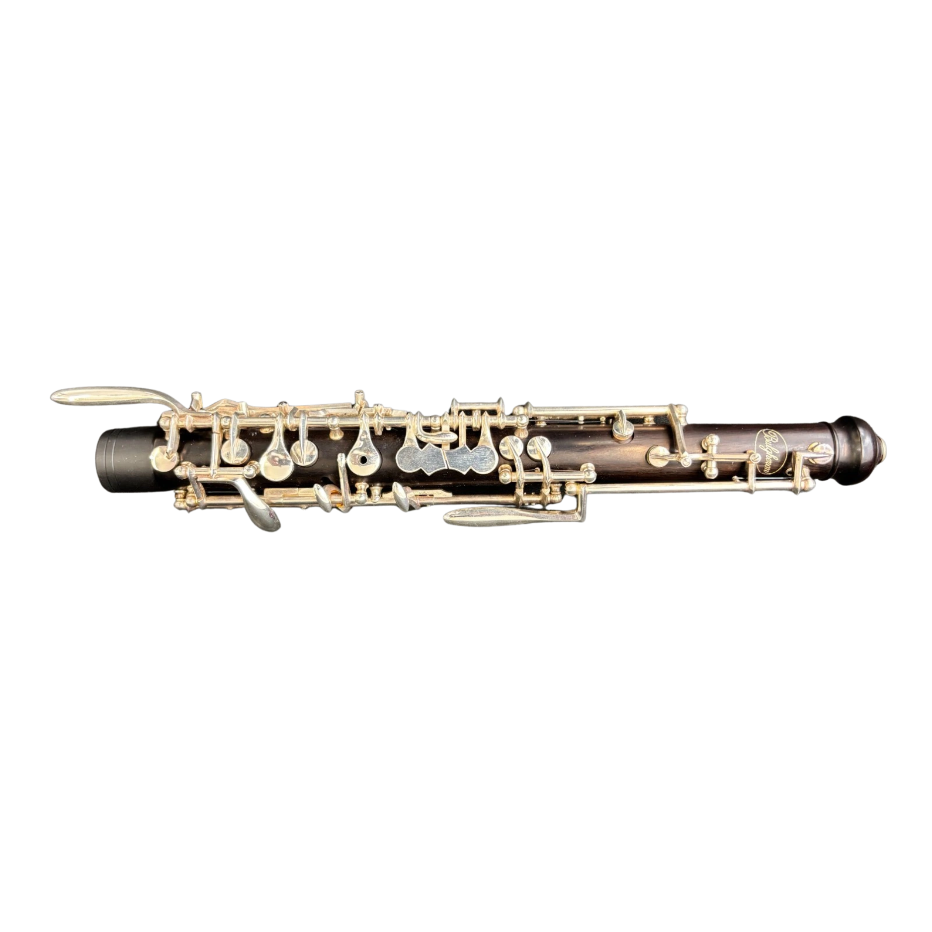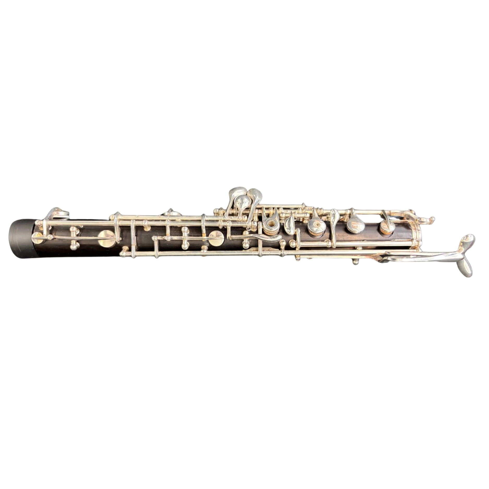Der Korpus aus Grenadillholz entspricht der klassischen Bauweise im professionellen Oboenbau. Die stark versilberte Neusilbermechanik ist präzise gefertigt und auf zuverlässige Funktion ausgelegt.