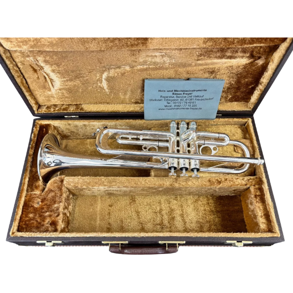Courtois Evolution Bb-Trompete in neuwertigem Zustand. Versilbertes Goldmessing, 3 Périnetventile, Originalkoffer und 5 Jahre Garantie. Sofort spielbereit.