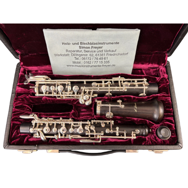 Hier bieten wir eine A. Durin Oboe (halbautomatisch) aus Grenadillholz an. Diese Instrumente wurden im Hause Bulgheroni gefertigt und eignet sich besonders gut als Schul- und Studenteninstrument. Durch die hochwertige Verarbeitung und die zuverlässige Mechanik bietet die Oboe eine angenehme Ansprache und ein ausgewogenes Klangbild.
