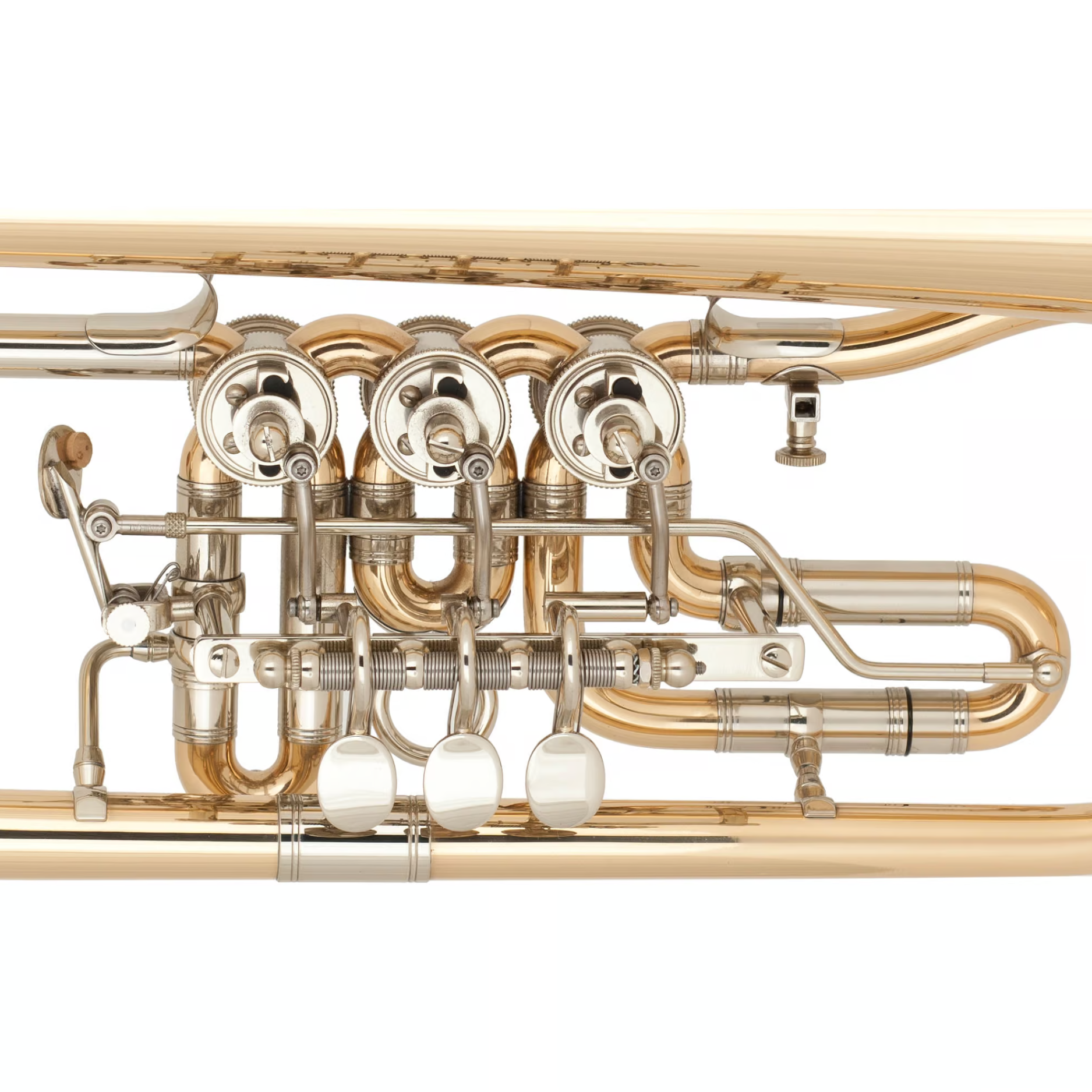 Die gleichmäßige Drehung der Drehventile gegen den Uhrzeigersinn ermöglicht ein besonders flüssiges Legatospiel bei allen Griffkombinationen. Die homogene und leichte Ansprache wird durch eine speziell entwickelte Mensur unterstützt, die zudem für eine hervorragende Intonation in allen Registern sorgt.
