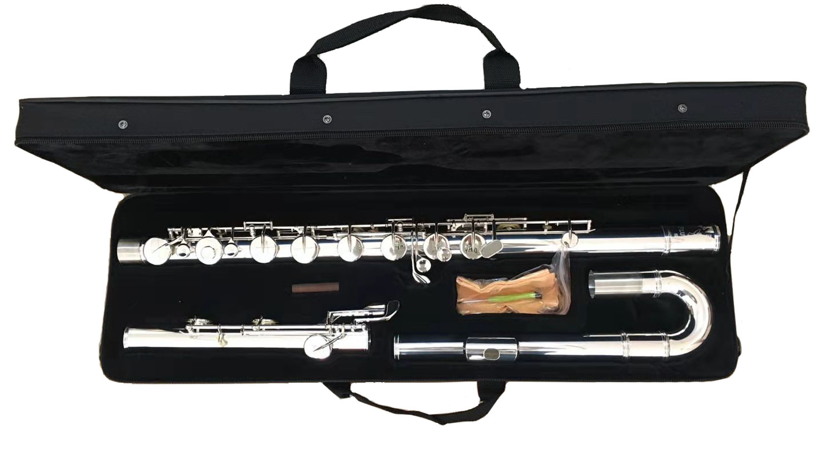 versilbert, E-Mechanik, offset, gebogener und gerader Kopf mit Etui und Überzug