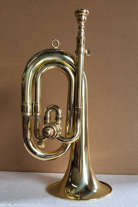 Schalldurchmesser 128 mm, Höhe 280 mm, Messing lackiert, Stimmzug, Umschaltventil Bb/C, mit Tasche und Mundstück