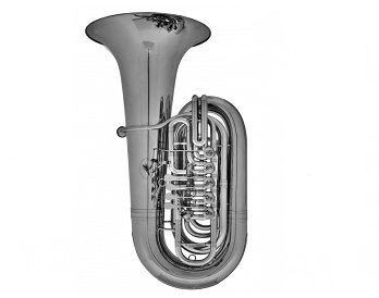 5 Drehzylinderventile, Schallbecher 48 cm, Bohrung 20,2 mm, Höhe 100 cm, Gewicht 11,0 kg, versilbert, mit Kugelgelenke, Goldmessing-Mundrohr, Spiral-Druckwerk, Neusilber-Beschläge, mit Koffer